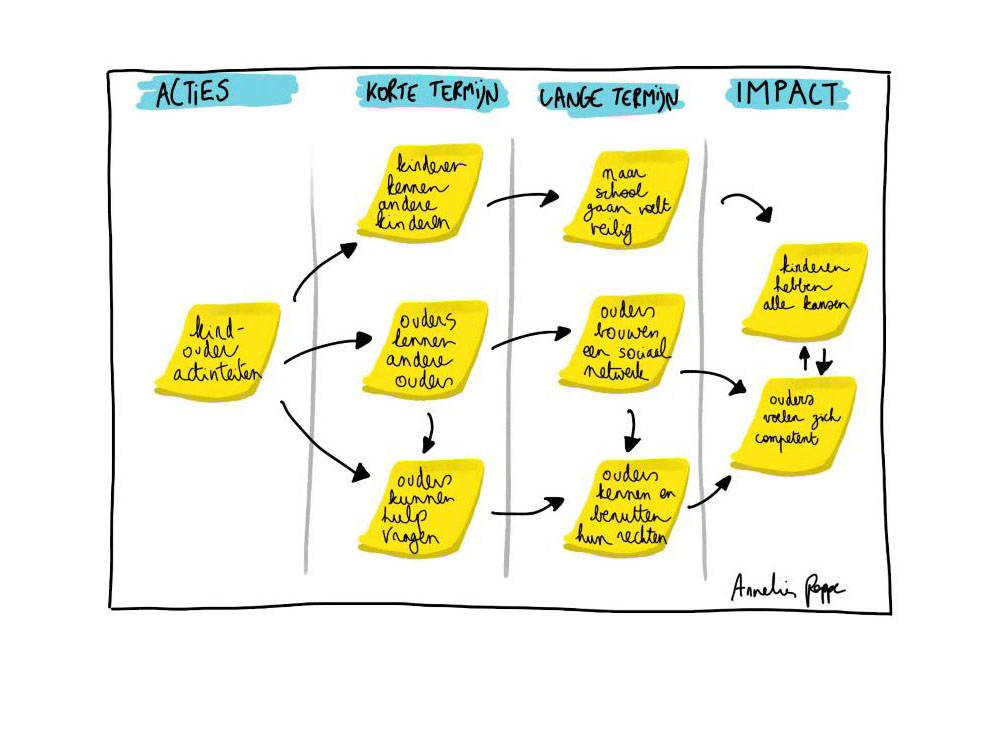 - Blijf flexibel: een veranderingstheorie is een levend document en mag aangepast worden.