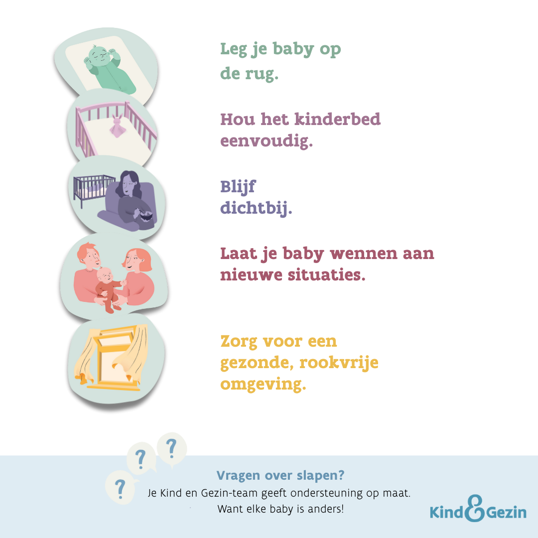 Help mee de vijf tips voor veilig slapen te verspreiden met dit campagnemateriaal.