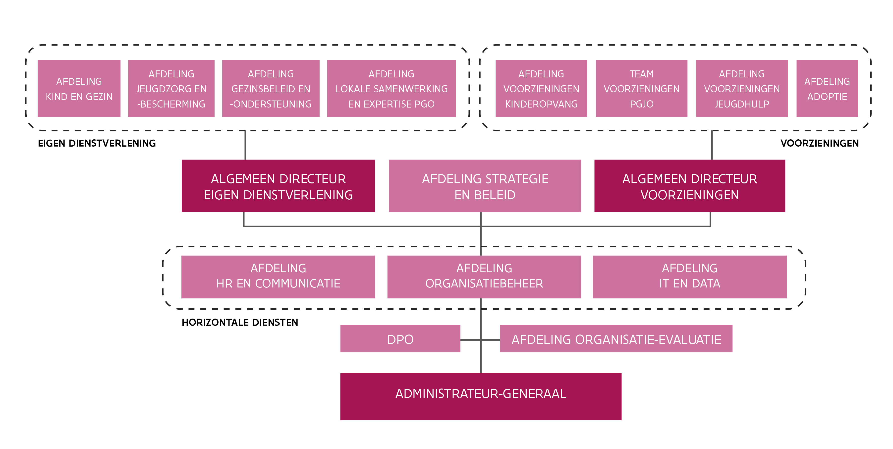 - de positionering binnen het beleidsdomein Welzijn, Volksgezondheid en Gezin en de Vlaamse overheid